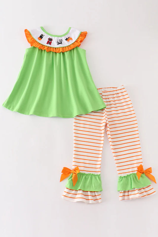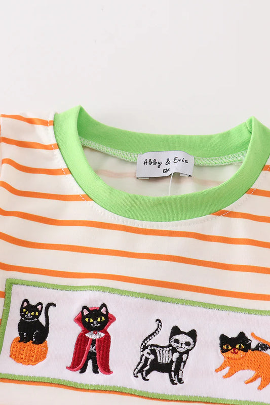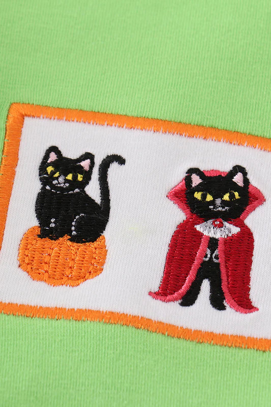 Green Halloween Cat Embroidery Boy Pant Set – Toddler & Boys Halloween Outfit