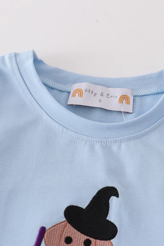 Halloween Witch Dog Embroidery Girl Shorts Set – Spooky Cute Outfit for Kids