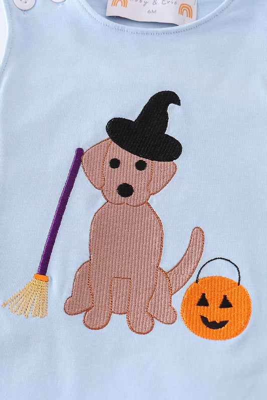 Halloween Witch Dog Embroidery Boy Shorts Set