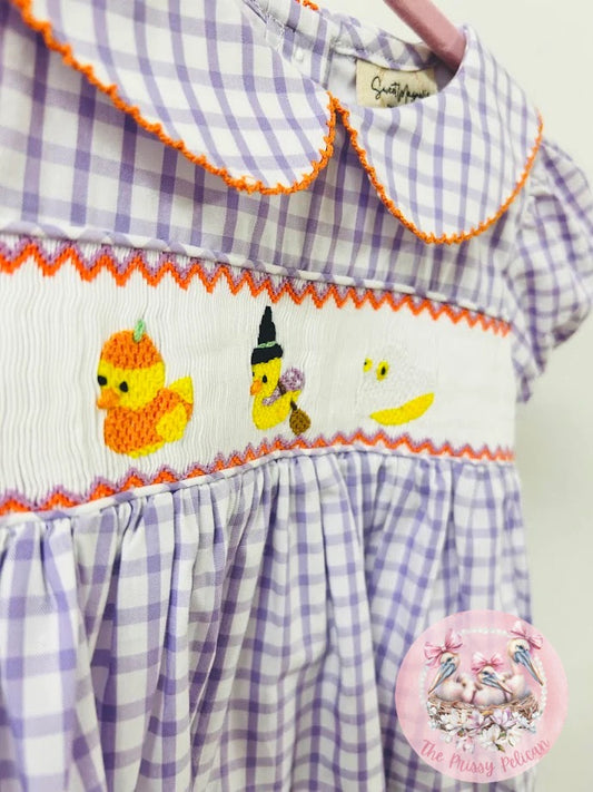 Duck, Duck, Ghost! Smocked Halloween Outfit – Custom Smocked Dress for Baby & Toddler Girls
