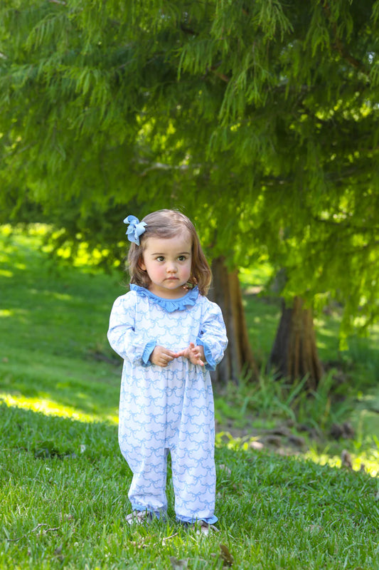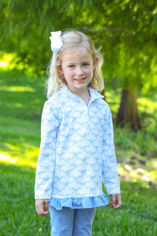 Blue Trellis Bow 1/4 Zip Pullover Set