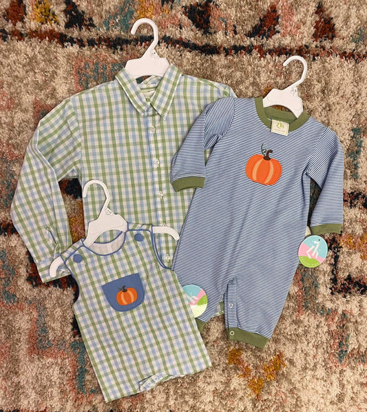Bluegrass Check Pumpkin Jon Jon – Classic Fall Outfit for Boys