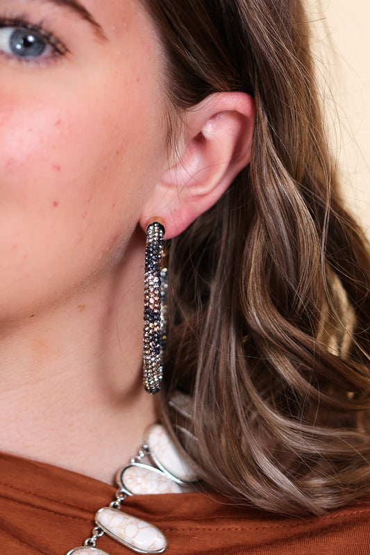 Cowboy Killer Oval Crystal Cowhide Earrings