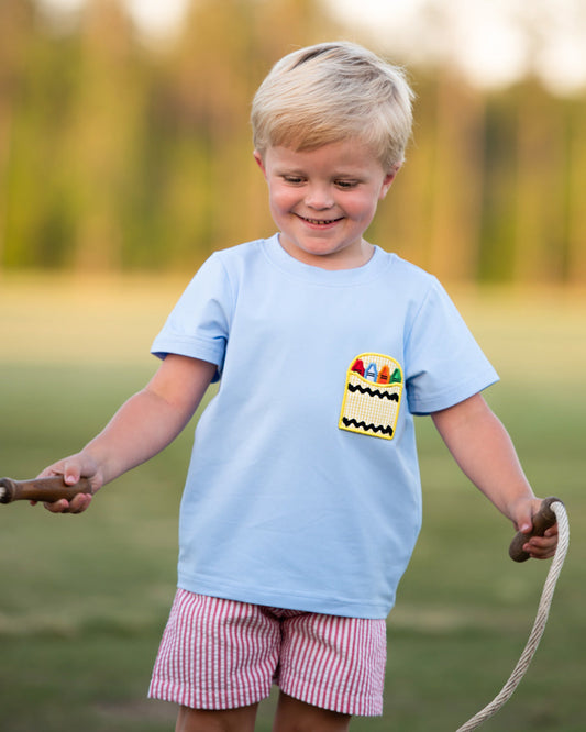 Crayon Pocket Red Seersucker Boy Shorts Set- FINAL SALE