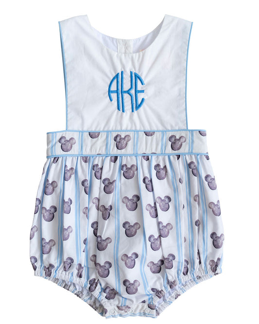 Bunnies Smocked Colorful Stripes Bubble In Blue-FINAL SALE