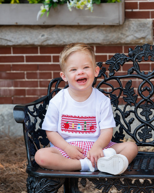 School Supplies Smocked Red Windowpane Shorts Set- FINAL SALE