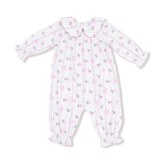 Dainty Buds and Bows Stripe - Smocked Long Sleeve Romper with Peter Pan Collar