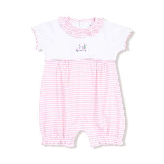 Baby Golf Carts - Pink - Ruffle Collar Romper with Piping and Picot