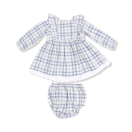 Blue Plaid - Long Sleeve Dress and Bloomer (2T to 4T Dress Only)