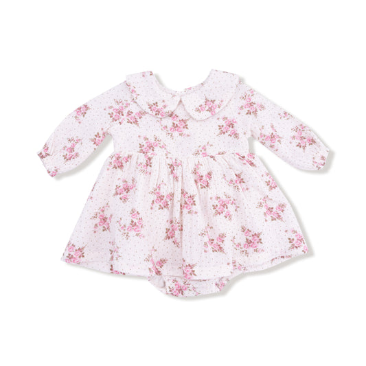 Belle Rosette Dot - Long Sleeve Peter Pan Collar Bubble with Skirt