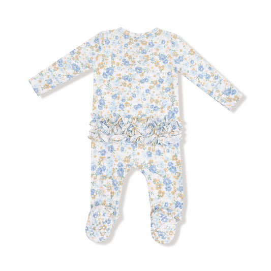 Sweet Rose Calico - 2 Way Zipper Ruffle Back Footie