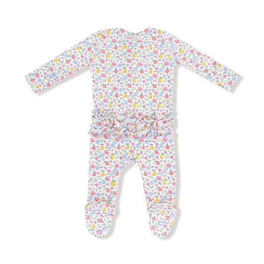 Fall Fruit Floral - 2 Way Zipper Ruffle Back Footie