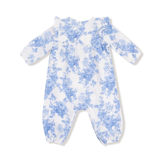 Dream Cottage Floral Blue - Ruffle Sleeve Romper