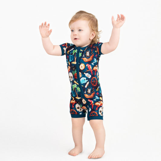 Ahoy Matey | Bamboo Shorty Zipper Romper - Baby, Infant & Toddler