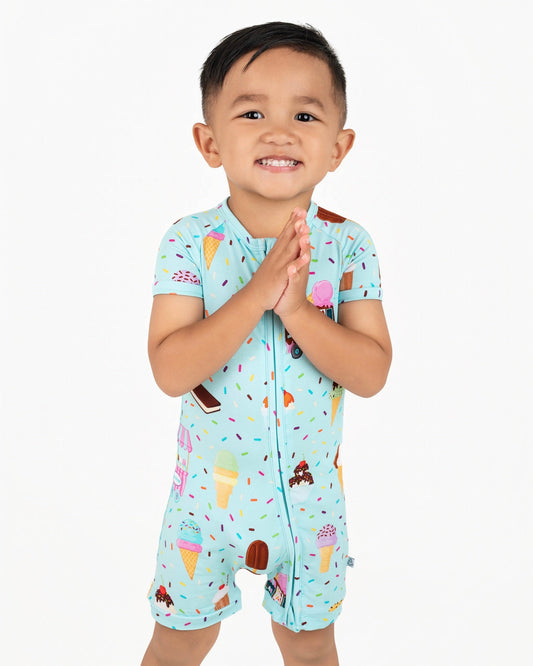 Cotton Candy Ice Cream | Bamboo Shorty Zipper Romper - Baby, Infant & Toddler