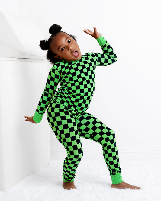 Green Checkers | Two-Piece Bamboo Long Sleeve Toddler & Kids Pajamas