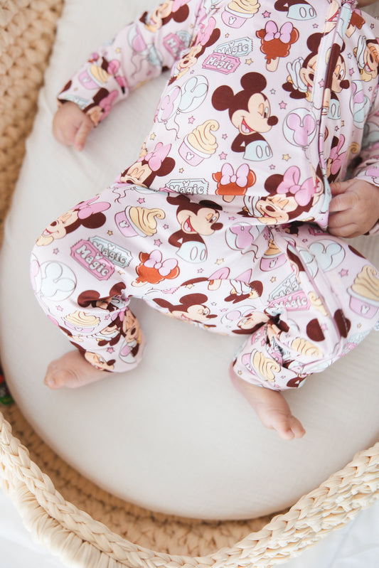 Bubblegum Pink Stripe Ruffled Convertible Footie