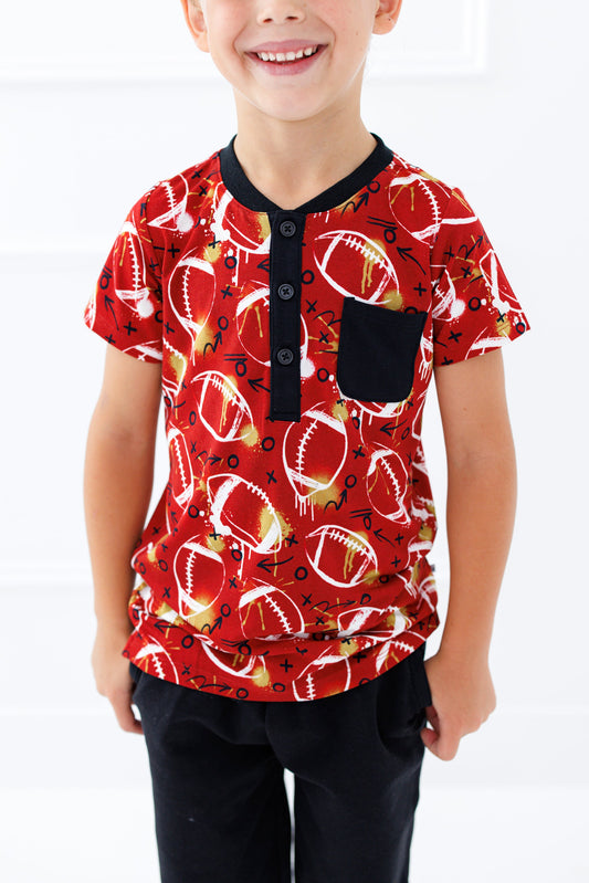 Graffiti Football Henley T-Shirt : RED AND GOLD