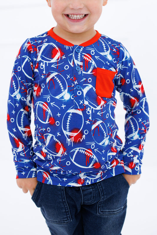 Graffiti Football Henley T-Shirt : BLUE AND RED