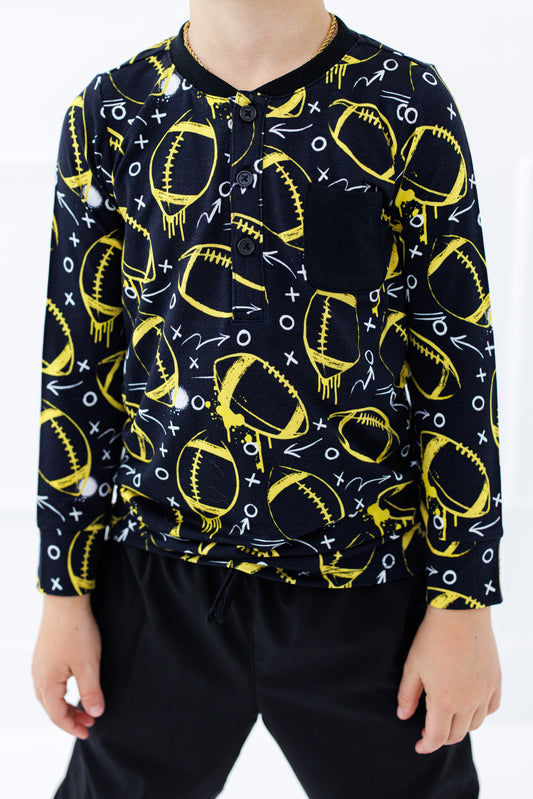 Graffiti Football Henley T-Shirt : BLACK AND YELLOW/GOLD
