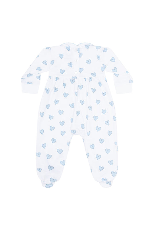 Blue Heart Print Smocked Footie