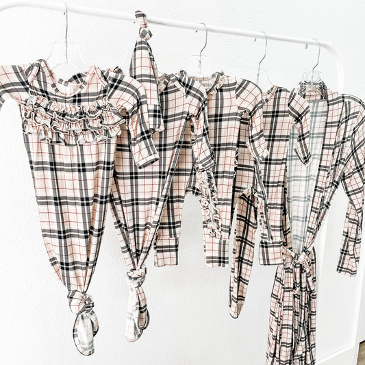 Ivory Plaid Square Neck Maternity Midi Dress