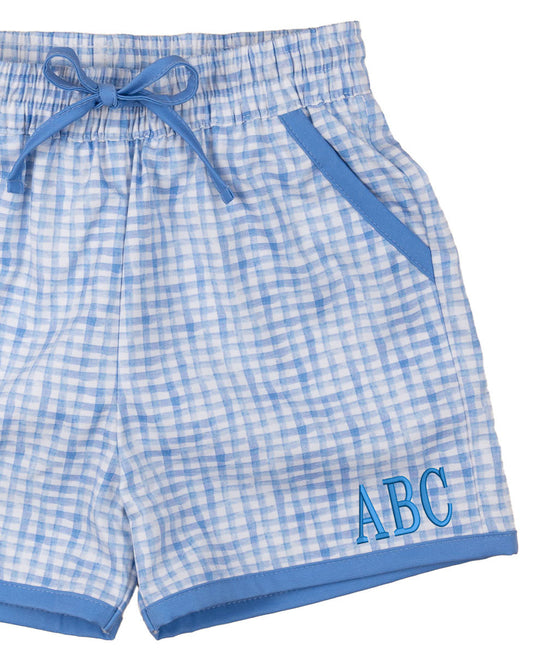 Blue Watercolor Plaid Swim Trunks-FINAL SALE