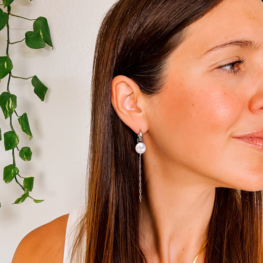 Pearl Shell Checkered Super Chunky Huggie Hoop Earrings