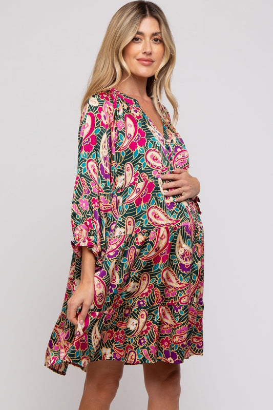 Fuchsia Textured Sleeveless Smocked Maternity Dress