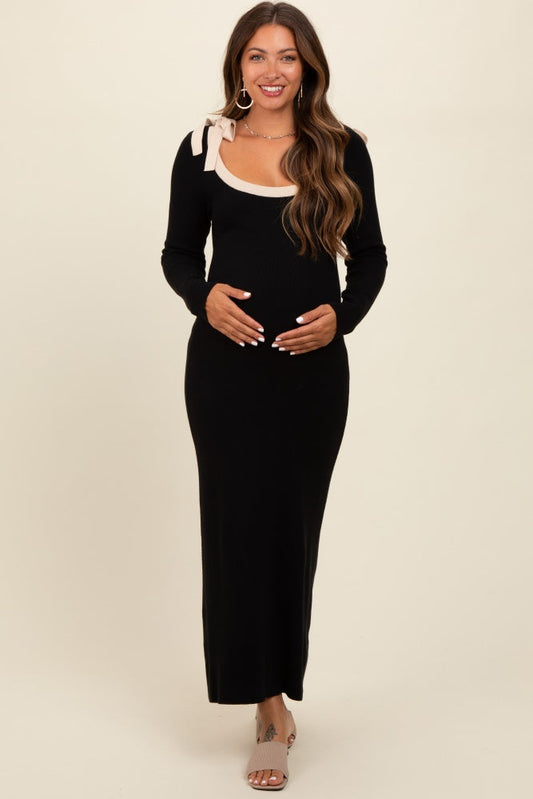 Black Shoulder Bow Detail Maternity Maxi Sweater Dress
