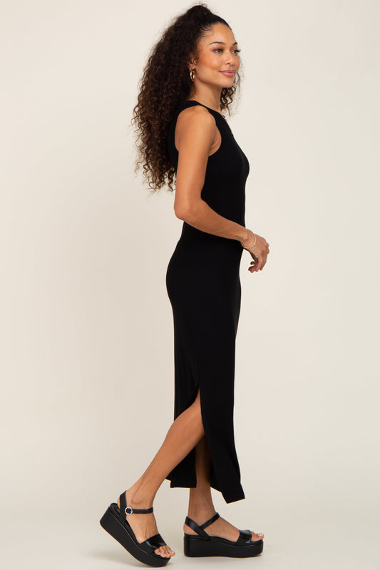 Cream Striped Cutout Cross Back Side Slit Midi Dress