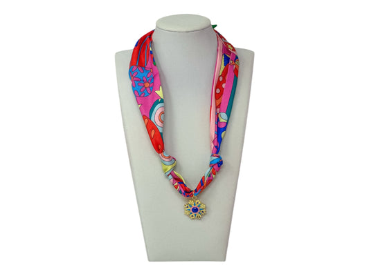 Scarf Charm Necklace - Pink Retro with Blue and Pink Burst