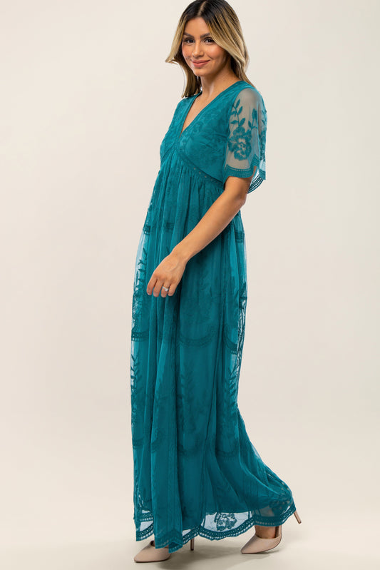 Olive Satin Ruffle Trim Maternity Midi Dress