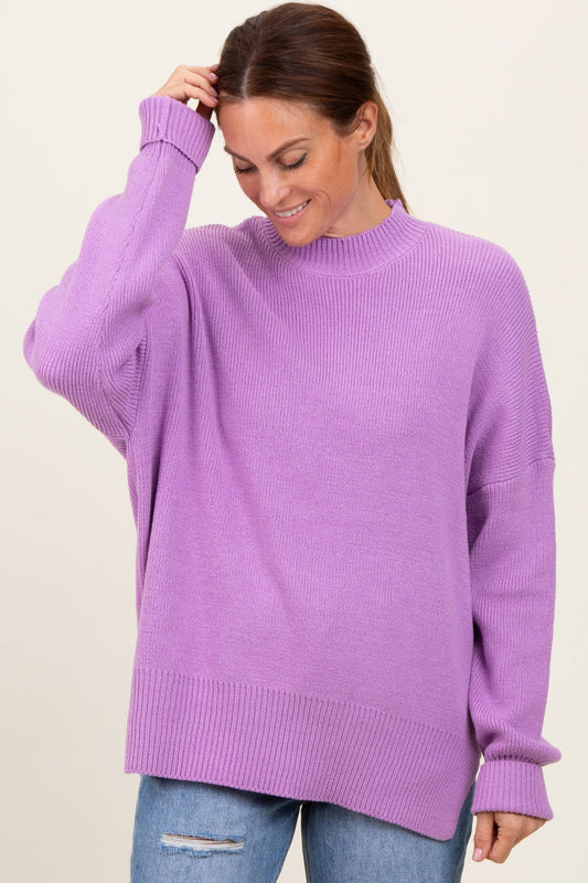 Lavender Mock Neck Basic Sweater