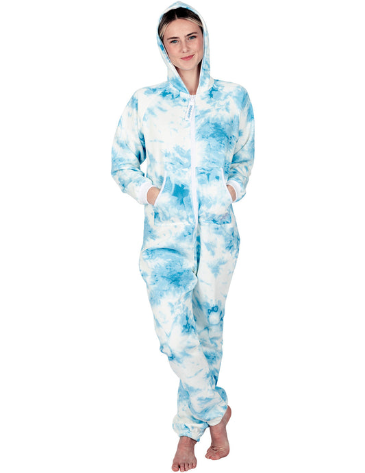 Tie Dye Blue Kids Footless Hoodie Onesie