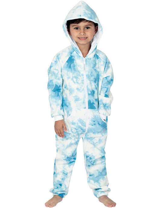 Tie Dye Blue Kids Footless Hoodie Onesie