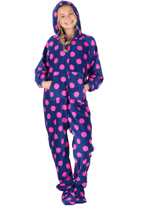 Navy Pink Polka Kids Hoodie Chenille Onesie