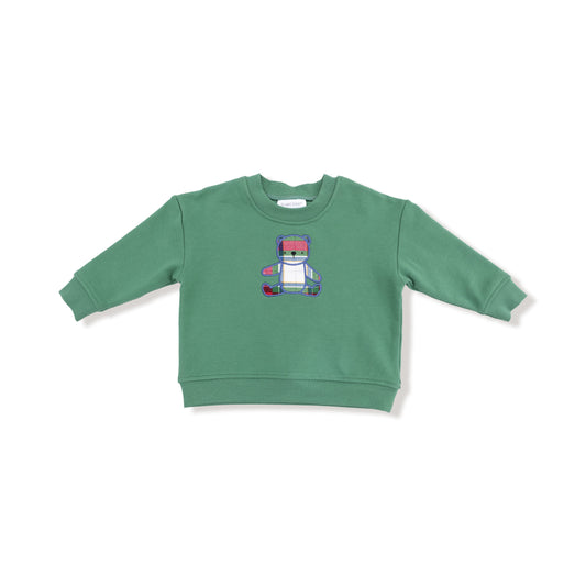 Holiday Plaid - Drop Sleeve Bear Sweatshirt with Rib Cuffs