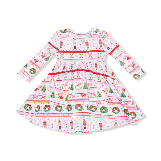 Sugar Plum Fairy - Nutcracker Fair Isle - Pink - Twirly Long Sleeve Dress