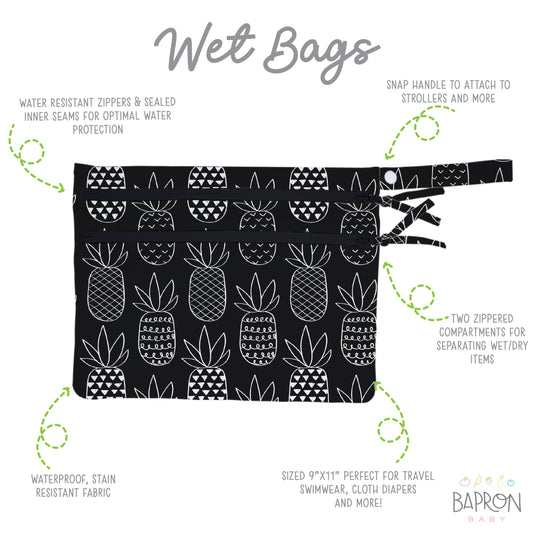 Pineapple Monochrome - Waterproof Wet Bag (For mealtime, on-the-go, and more!)