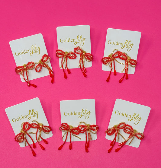 Mini Bow Earrings - Red and Gold