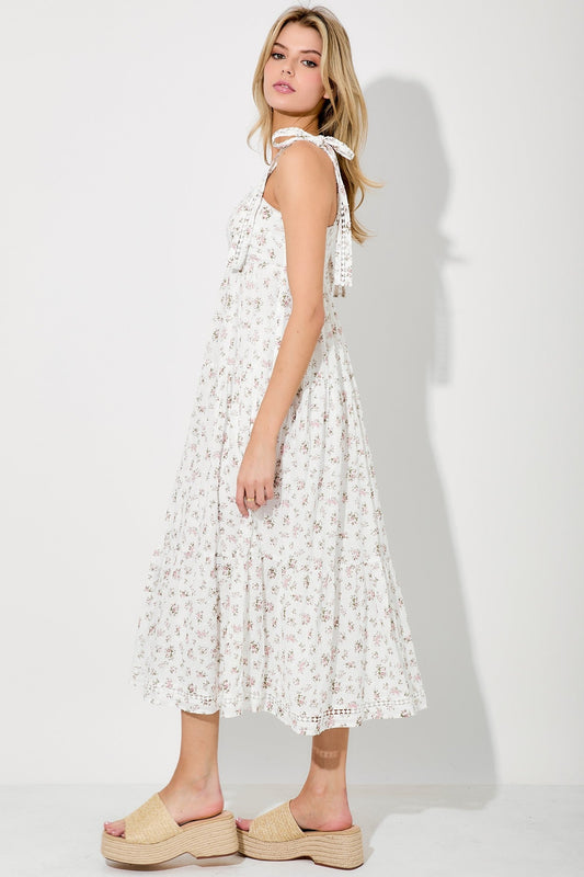 Green Floral Ruffle Off Shoulder Maxi Dress