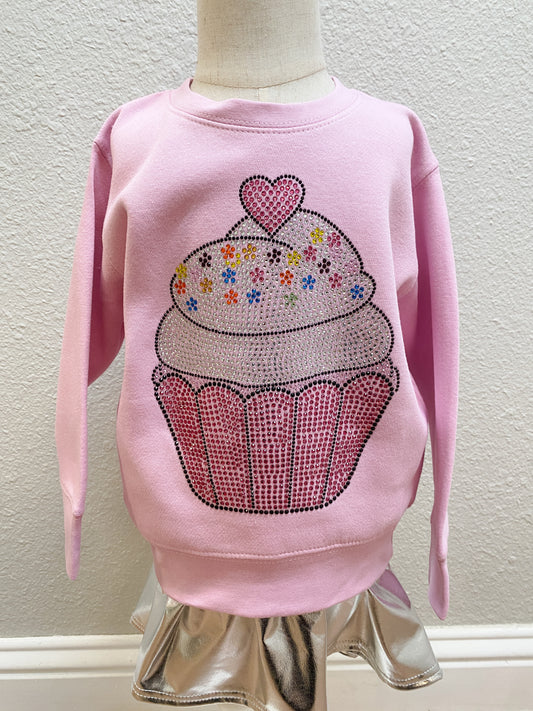 Pink Rhinestone Cupcake Sweatshirt – Girls Glitter Pullover