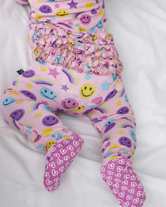 Smiley Rainbow Ruffled Zippered Footie – Bamboo Baby Sleeper