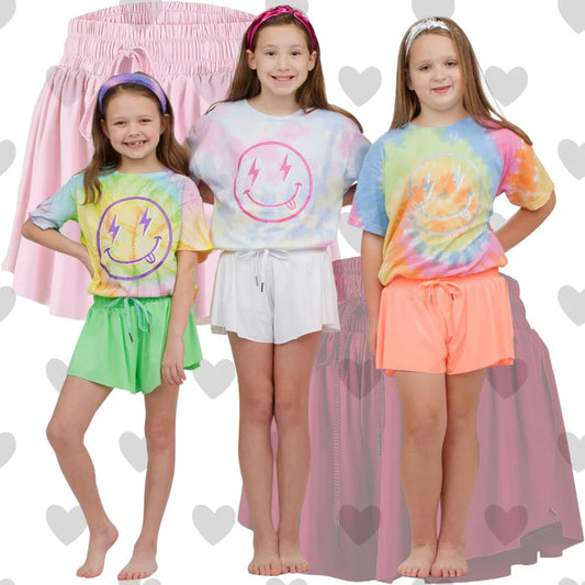 Smiley Face T-Shirt in Tie Dye Eternity with silver glitter