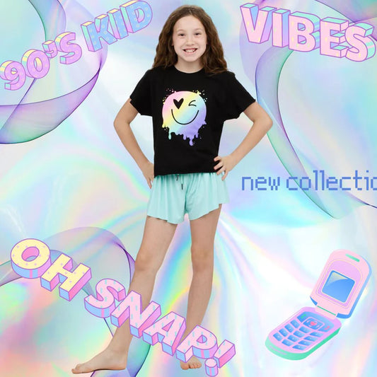 Drip Smiley on Black Vintage Cut Boxy T' 90S THROW BACK