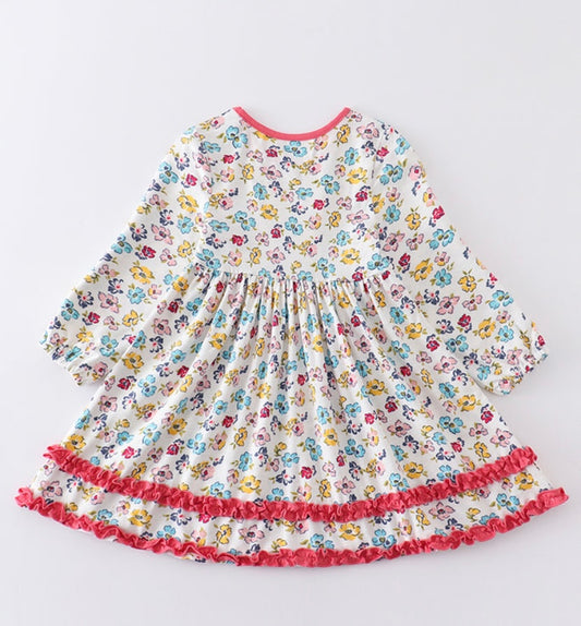 Platinum Floral Print Ruffle Dress – Girls Boutique Outfit