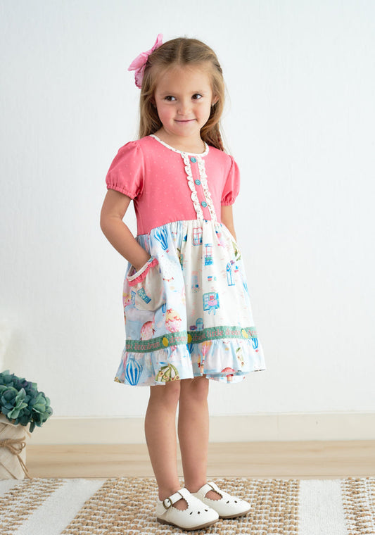 Platinum Hot Air Balloon Dress – Girls Boutique Puff Sleeve Dress