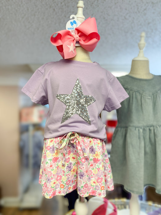 Lavender Boxy Tee with Silver Sequin Star