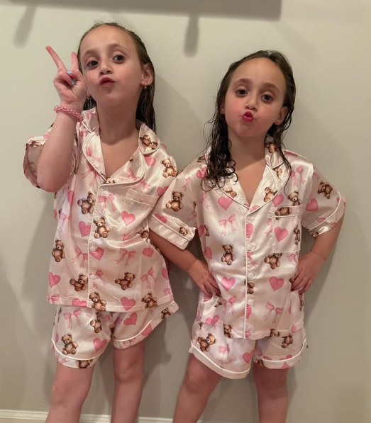 Girls Satin Pajama Set – Bears & Bows Print
